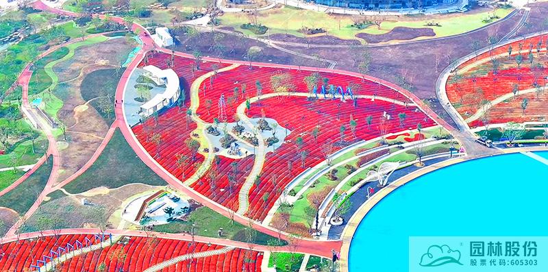 位于項目中心的天空花湖占地面積約27萬平方米,以水環、外環及花瓣環作為構成花海的主要結構體系,溪水環繞花海外圍形成花溪景觀。水環:即天空之鏡,由一片圓形淺水水面作為花海的核心區域,天水一色,行人在其上猶如在大型的鏡面游走?;ò戥h:作為花海的主要元素“花瓣”,以有“英雄花”之稱的火星花作為主要片植品種,同時采用多種觀賞性花卉,如紫絨鼠尾草、矮生馬鞭草、郁金香、三角梅、粉黛亂子草等花帶打造充滿活力的花海景觀。外環:圍繞“飄落的花瓣”設計主題甄選花卉品種,采用相同花期的紅粉色為主的多年生花卉片植方式,渲染烘托中心花海的熱烈氣氛,以綠色草坪作為襯托花海的底色,引導游人近距離打卡觀賞。